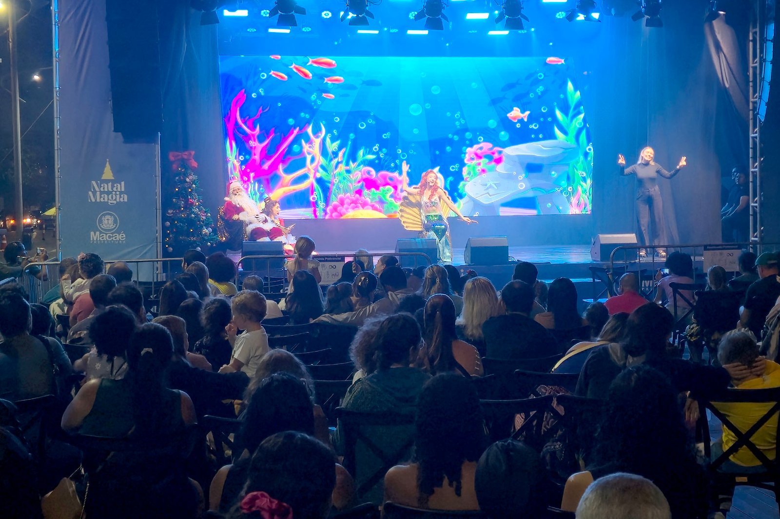 A noite desta sexta-feira (19), na Praia Campista foi marcada pela leveza e talentos das apresentações da programação do Natal Magia, promovido pela Prefeitura de Macaé. O espaço abrange área especial destinada a gestantes,idosos, pessoas com necessidade especiais e transtorno do espectro autista (TEA). A programação que alia cultura, emoção e fantasia, está transformando a cidade em um grande destino natalino com atrações gratuitas, promovendo o turismo, a interação familiar e reforçando os laços sociais com um evento acessível para todos.