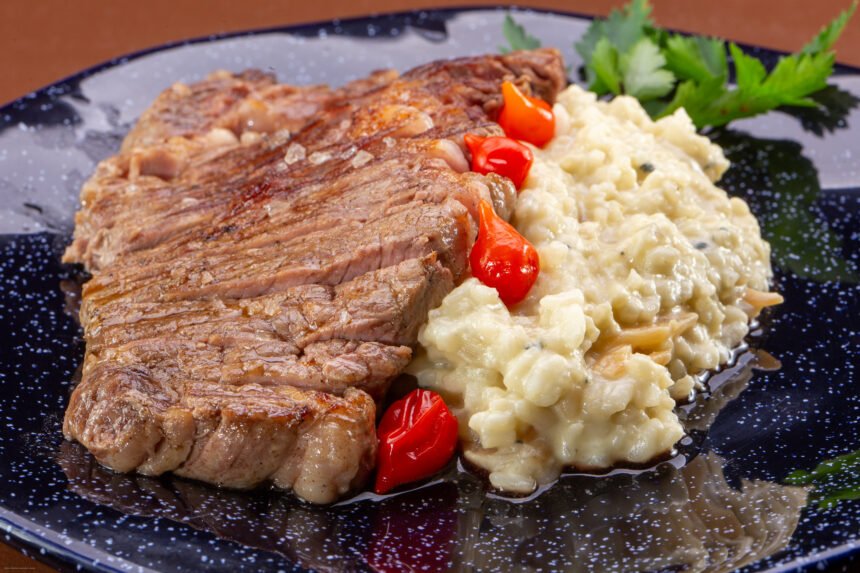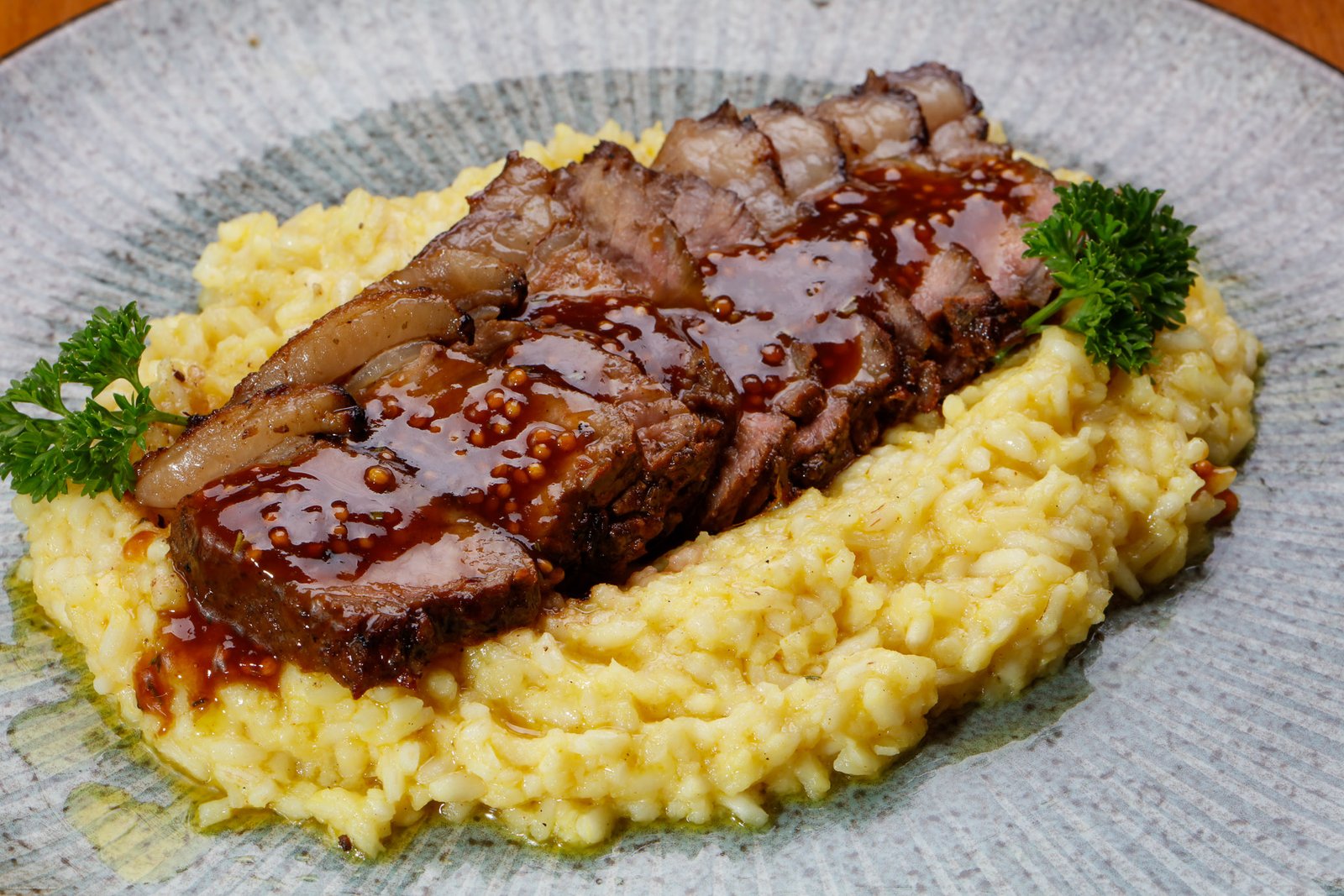Novo Parada: Ancho no Braseiro (ancho braseado com risoto de pera com gorgonzola)