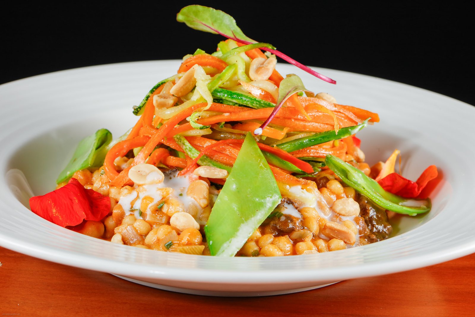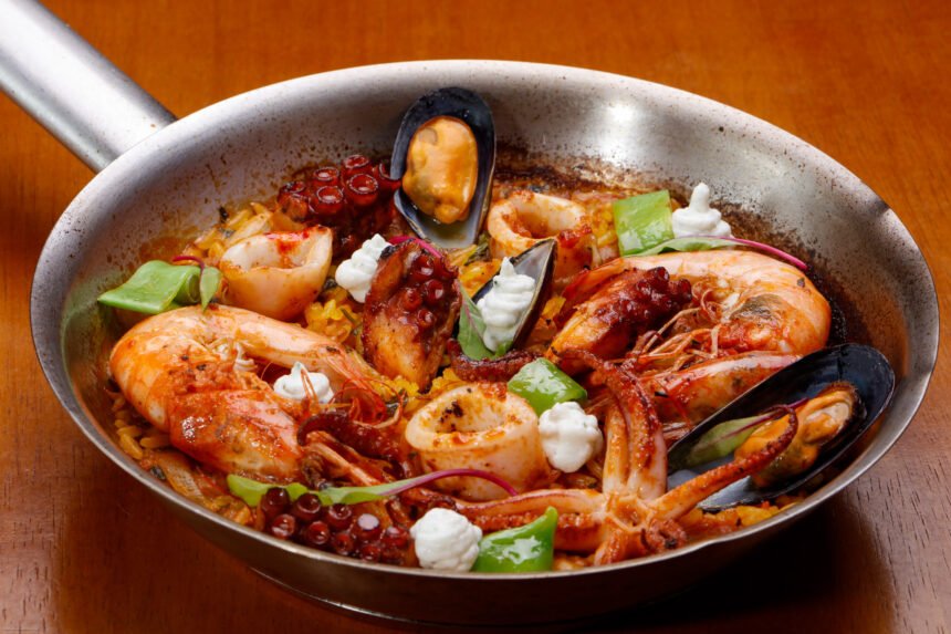 Ilhote Sul: Pão de Queijo das Vertentes (sanduiche recheado com pernil à moda mineira e requeijão de corte) e Fregola ao Molho Thai (com leite de coco, curry, espaguete de cenoura e abobrinha, pimenta dedo-de-moça, funghi porcini e amendoim do Sr. Diná) e Paella do Ilhote (camarão VM, lulas de arraial do cabo, polvo e mexilhões, com sofrito e açafrão espanhol, acompanhado de maionese defumada);