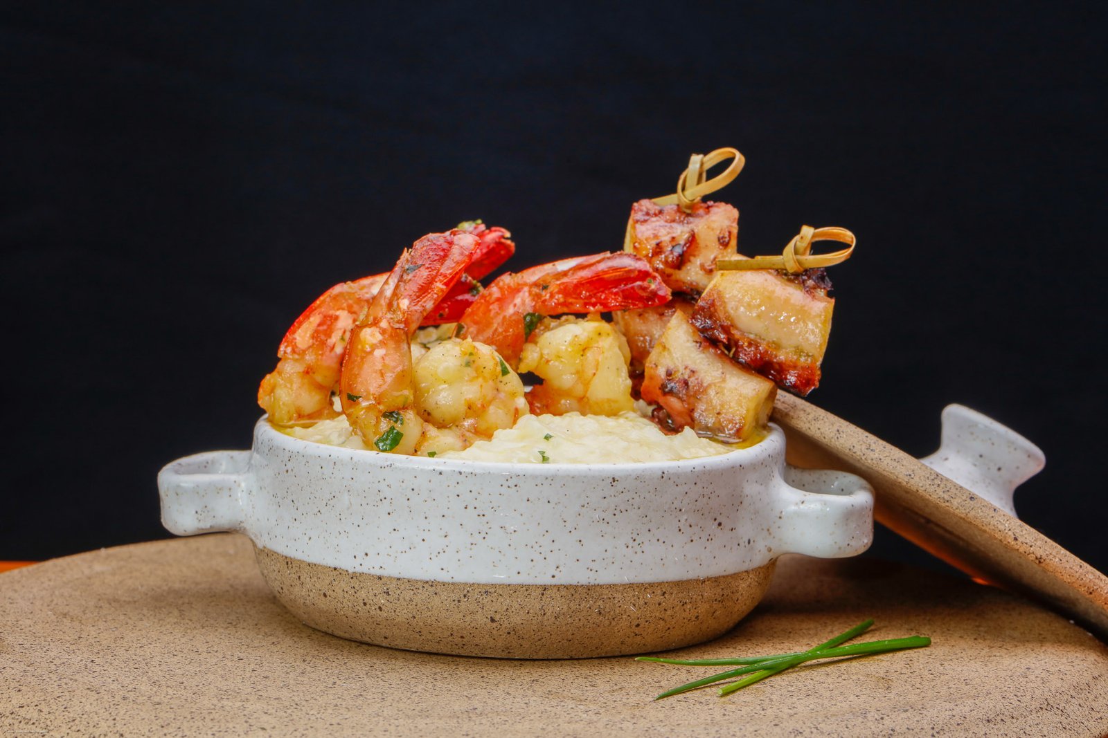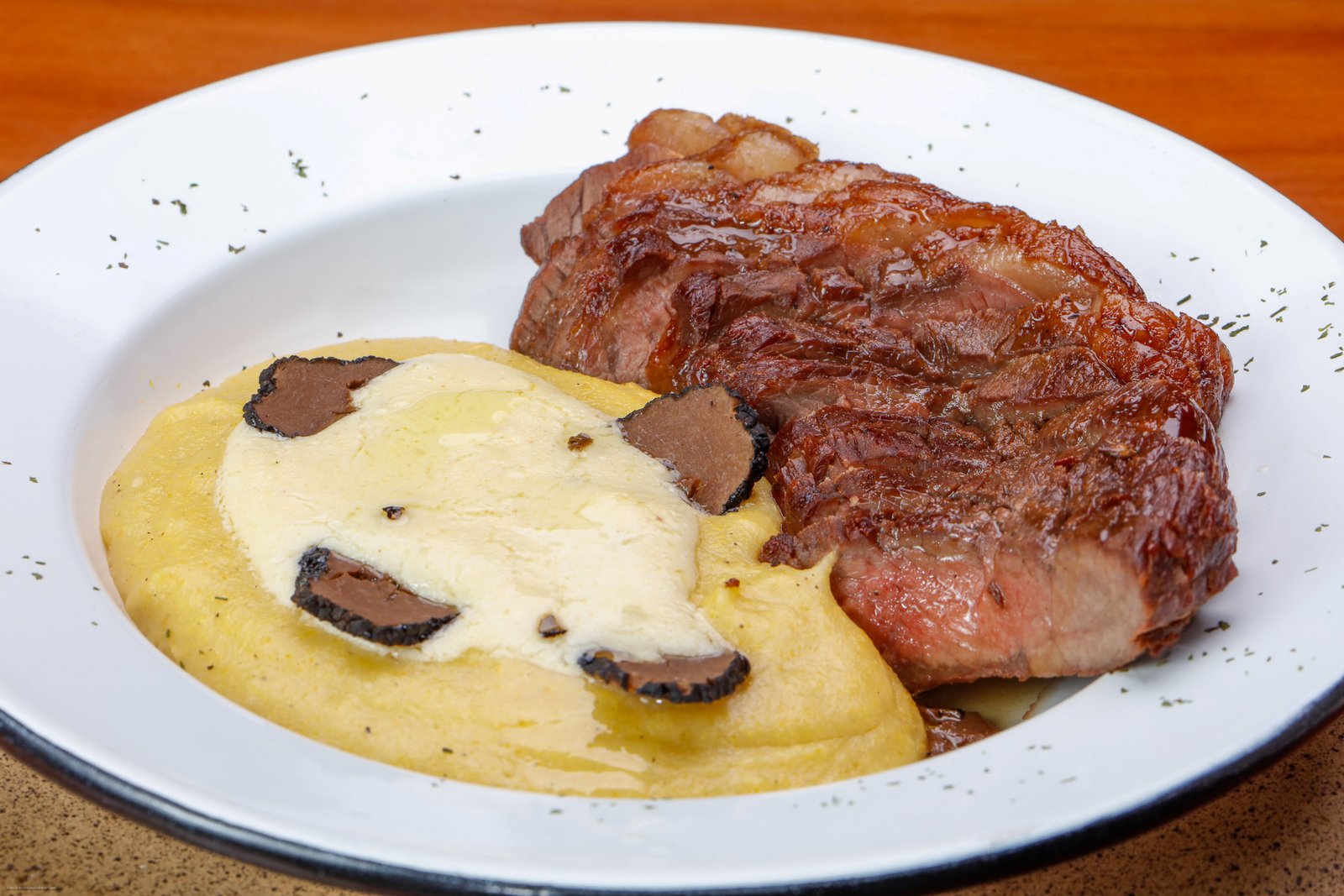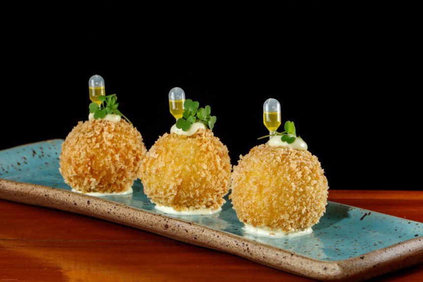 São João: Mineirice (bolinho de tapioca com provolone, linguiça e cheiro-verde) e La Bella Polenta (baby beef marinado, polenta cremosa de milho cateto e creme de queijos trufados)