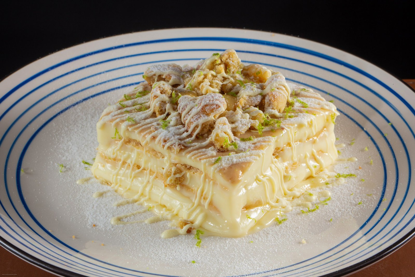Mirabolando: Pavê Bossa Nova (camadas de creme de limão, biscoito champanhe no limoncello e caramelo de limão, finalizadas com ganache de macadâmia, cookie bossa assado na hora e chocolate branco);