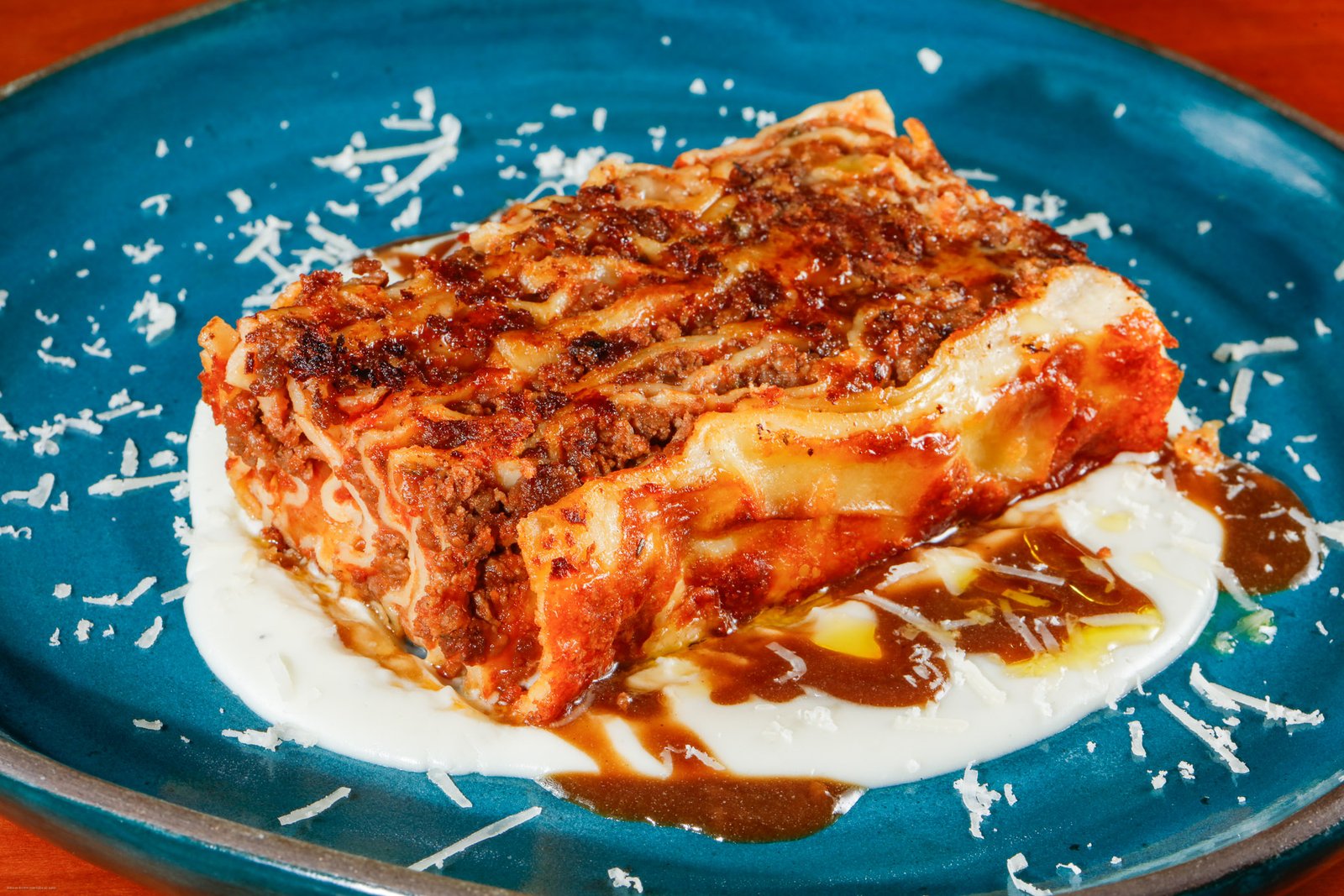 Cozinha Urbana: Bolinhos de Vaca Atolada (bolinhos de costela desfiada com mandioca, aioli de agrião e manteiga de garrafa trufada artesanal) e Lasanha na Parrilla (oito camadas de fraldinha, finalizada com bechamel cremoso, molho madeira da casa e parmesão ralado);