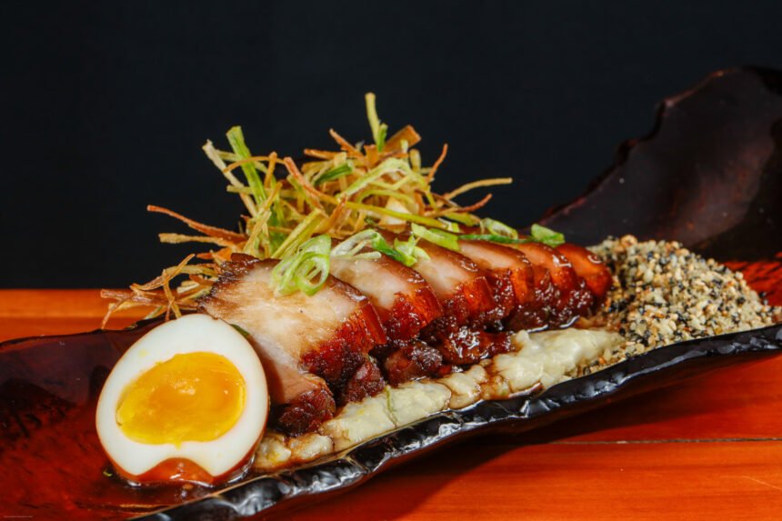 Yashi: Miojão de Konoha (ramen com lombo suíno caramelizado, ajitamago, cogumelos, alga nori e molho especial de shoyu e ervas) e Honorável Leitão (panceta ao forno caramelizada no molho teriyaki, arroz cremoso de alho-poró, ajitama, farofa com gergelim e crispy de alho-poró).